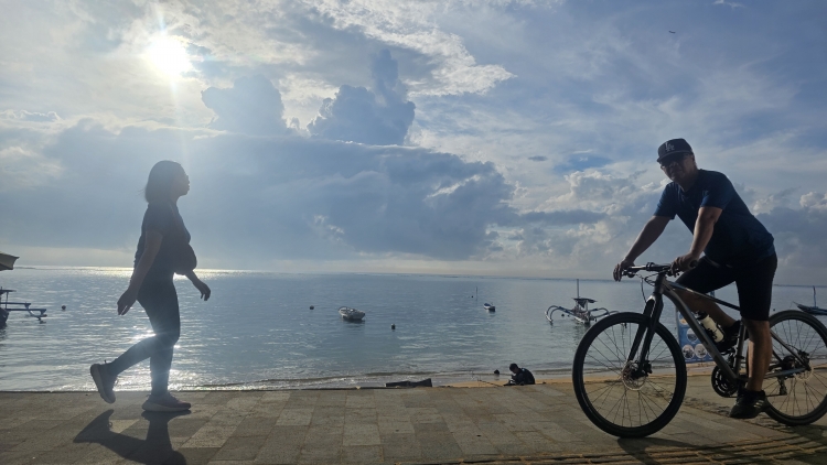 발리 일출을 보려면 사누르 해변으로 . 카페와 여행객의 천국, 조깅과 자전거 타기 (촬영-코디-방송-여행)