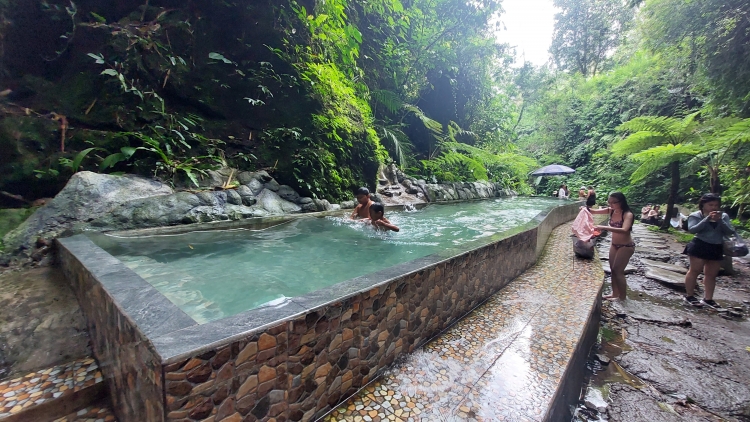 동굴 입구를 지나면 20~30미터 위에서 떨어지는 비경의 폭포와 반대쪽은 인공적인 계곡 수영장까지