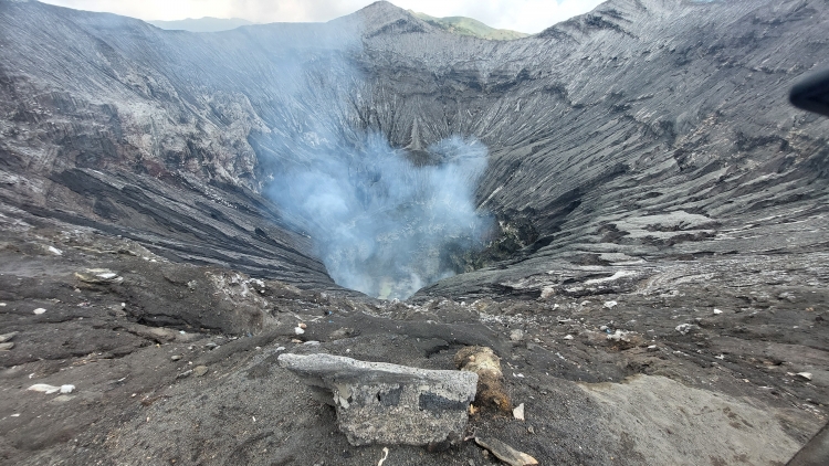 브로모 화산 밑 계단까지 도착했고 화산 분화구까지 있는 297계단을 걸어 올라가 다시 활화산 브로모 정상에 도착했습니다.