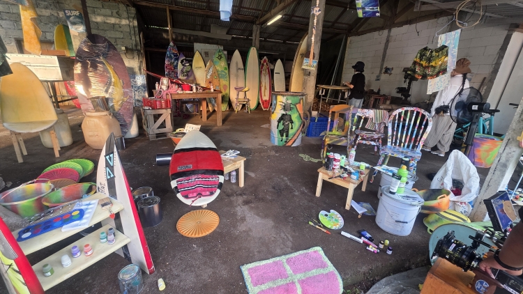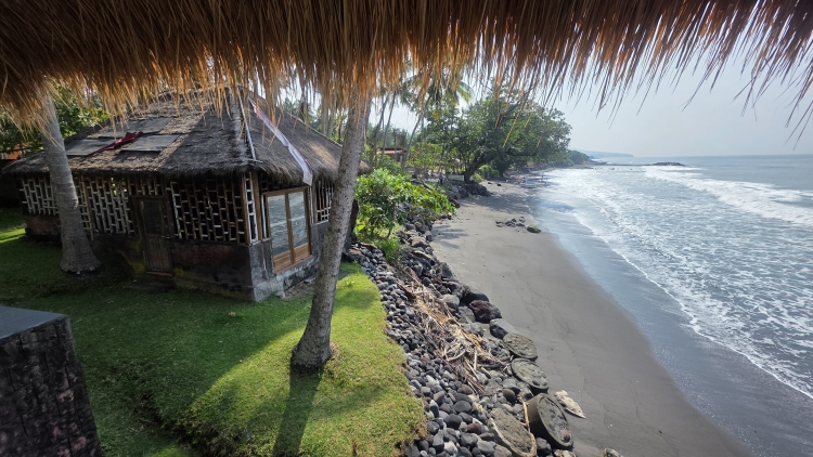 5. Bali Chocolate Factory(수제 초코렛 공장) 의 해변과 배모양의 정자 그리고 스테이지