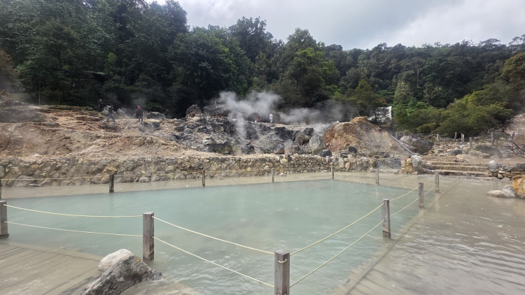 이 특별한 체험은 인도네시아 반둥의 치위데이(Ciwidey) 지역에 위치한 렝가니스 화산 분화구(Kawah Rengganis) 에서 즐길 수 있습니다. 렝가니스 분화구는 오랜 전 화산 폭발로 형성된 천연 관광지입니다. 폭발 후 물이 차오르며 분화구 중앙에 작은 호수가 생겼고, 지금은 천연 유황 온천으로 이용되고 있습니다.