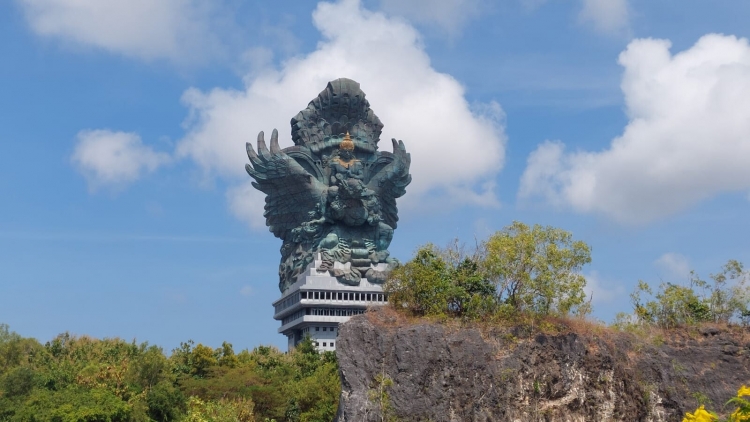 받침대를 포함해 약 121m에 이르는 이 조각상은 세계에서 4번째 가장 높은 조각상 중 하나로 꼽히며, 힌두교에서 우주의 질서를 지키는 존재로 여겨지는 위스누 신(Dewa Wisnu)과, 충성과 헌신을 상징하는 신화 속 새 가루다를 형상화하고 있습니다.