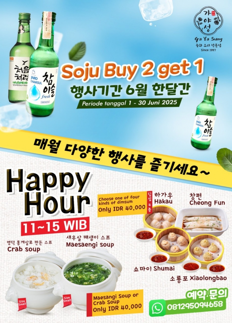 자카르타 중화요리 전문점 "가야성" 30만 루피아 바우처를 24만 루피아에 판매합니다.