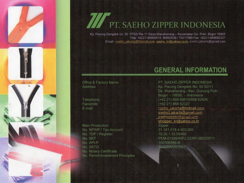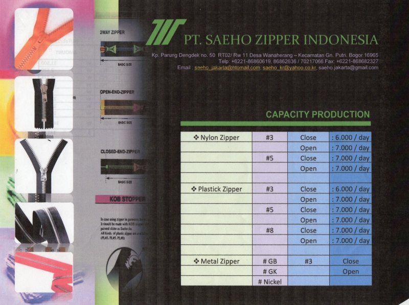 제조업 | PT SAEHO ZIPPER INDONESIA