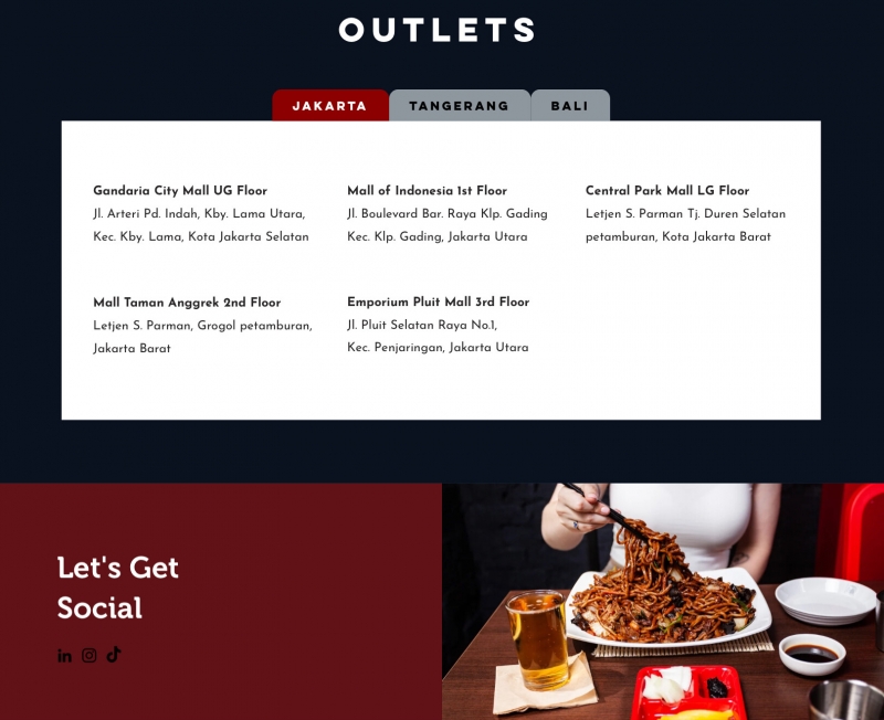 자카르타 지역 1호점: 자카르타 간다리아 씨티 몰 2호점: 자카르타 따만앙그렉 몰 3호점: 자카르타 모이(MOI) 몰 4호점: 자카르타 엠포리움 뿔루잇 몰 5호점: 땅그랑 리빙월드 몰 6호점: 자카르타 센트럴 파크 몰 발리 지역 7호점: 발리 비치워크 몰 쇼핑센터 8호점: 발리 리빙월드 덴파사르