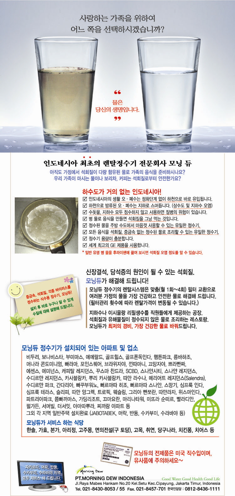 기타 | 모닝듀(Morning Dew) 정수기. PT.MORNING DEW INDONESIA