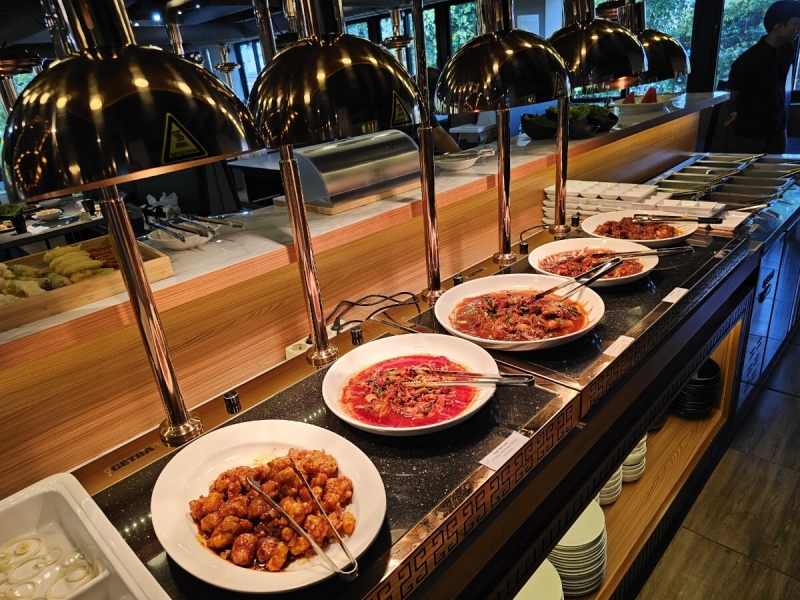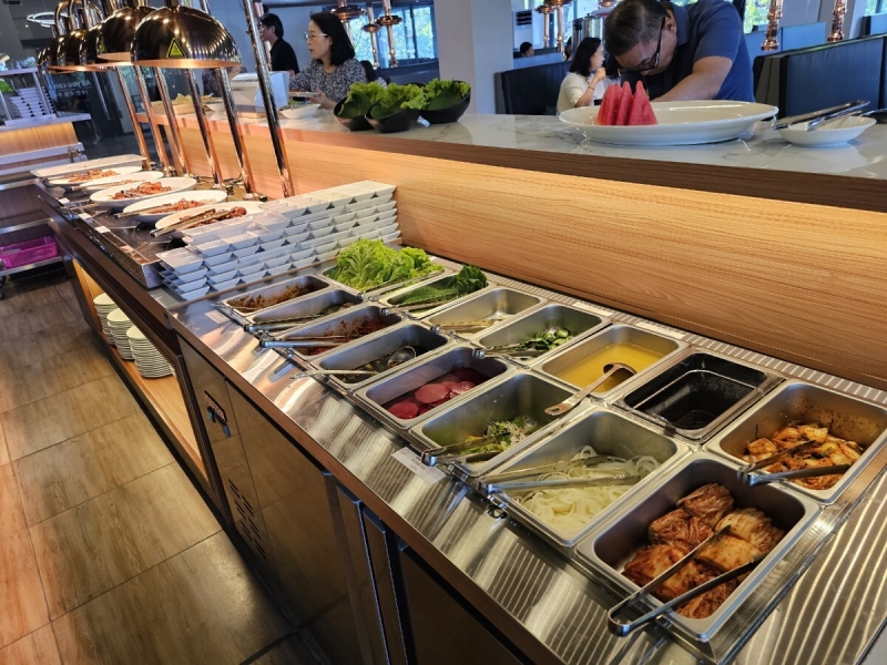 - 뷔페 테이블의 음식은 무제한으로 리필 가능합니다.