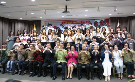 한국자유총연맹 인도네시아지부(회장 현상범)는 지난 25일, 6.25전쟁 제66주년 기념식과 더불어 ‘나라사랑한마음’ 경연대회 시상식을 한국문화원에서 거행하였다. 이번 행사에는 조태영대사를 비롯한 대사관 관계자, 한인단체장 그리고 출품 학생과 친지 및 학부모를 비롯한 동포 약 130여명이 참석하여 성황을 이루었다. 국가관의 확립과 올바른 역사의식 고취를 위하여 동포자녀 학생들을 대상으로 한 이번 경연대회는, 6.25전쟁 제 66주년 기념행사의 일환으로 초, 중, 고등부로 나눠 글짓기, 웅변 및 UCC 동영상 등 세 부문으로 펼쳐졌다. 약 130여 명이 참가해 6.25, 북한인권, 통일, 독도 및 대한민국 등 5가지를 주제로 111작품을 출품하였으며, 당일 우수상 후보자들의 작품 10편이 발표 되었다. 작품들을 감상한 조태영대사는 학생들의 어휘력과 역사의식에 놀랐다고 하시면서, 올바른 역사의식과 바른 국가관의 중요성을 강조하시었으며, 함께 대한민국을 더욱 성장 발전시켜 나갈 것을 역설하였다. 행사에 참석하신 동포들도 학생들의 역사의식에 감동하면서도 지속적인 역사교육의 절실함을 느끼는 귀중한 시간이었다. 특히 학생들과 동포들은 행사장에 전시된 수십여 점의 6·25전쟁 사진과 북한의 대남도발 사진을 보며, 올바른 안보관과 ‘나라사랑’의 마음을 키우는 소중한 시간을 가졌다. ‘북한식당 출입자제’ 권유에 이어, 학생대표가 선창하는 “여러분의 값진 희생, 영원히 잊지 않겠습니다”를 함께 외치며 국가를 위해 목숨 바친 애국선열들의 충성의 의미를 되새기었고, 학생들과 동포들 모두 커다란 함성으로 “대한민국 만세”하며 만세삼창을 외치면서 ‘나라사랑’ 하는 마음을 더욱 굳게 다짐하는 가슴 뭉클한 시간이었다. UCC 경연대회 우수작 - 유튜브 링크 무궁화꽃이 피었습니다. 김민지(spring Field,11) https://youtu.be/OUshWcqcAfE 편지. 강림/김민지/김동균(JIKS,11)https://youtu.be/Yb7GLVP-IGA 통일. 김혜인/왕혜원/김한아/김상섭/배현민(JIKS,11) https://youtu.be/9qysbJa8_jw 12명의 학생에게 물었습니다. 김평강/강동헌/윤동욱(JIKS,11)https://youtu.be/8Od9Dfi36bA 6.25전쟁 제66주년 기념 및 경연대회 수상자 명단(학년, 학교 - JIKS인 경우 생략) 1. 노력상 가. 초등부 / 글짓기 - 5명 김은채(6,GMIS), 이휘서(3), 박시은(4), 김민경(6), 김연석(6) 나. 중등부 / 글짓기 - 12명 이상원(9), 나정원(9), 박하린(8), 최현준(9), 김민재(9), 박혜진(9), 한승이(9).류현지(9),안세인(9),하은희(9),박재홍(7),양애쉴리한별(7) 다. 고등부 / 글짓기 - 5명 최영은(10), 신지우(11), 조정은(11), 정지현(11), 김혜인(11) 라. 고등부 / 웅변 - 1명 이상경(11) 마.고등부 / UCC - 5개 작품 15명 이현비(11), 김지원, 서영인 안예은(11), 이민영, 이주영 안옥주(11), 김한아, 최수지 김소현(11), 박준서, 조연주 배현민(11), 장혁태, 이성준 2. 장려상 가. 초, 중, 고등부 / 글짓기 - 각 2명, 합계 6명 류채영(5) / 우연수(6), 박해민(9) / 김성연(9), 권지아(11) / 염승현(10) 나. 고등부 / 웅변 - 1명 서영인(11) 다. 고등부 / UCC - 2개 작품 4명 강림(11), 김민지, 김동균 김민지(11, Spring Field) 3. 우수상 가. 초등부 / 글짓기 - 1명 배은준(6) 나. 초등부 / 웅변 - 1명 김평안(3) 다. 중둥부 / 글짓기 - 1명 박미소(8) 라. 중둥부 / 웅변 - 1명 이병헌(8) 마. 고등부 / 웅변 - 1명 강림(11) 바. 고등부 / UCC - 5명 김혜인(11), 왕혜원, 김한아, 김상섭, 배현민 사. 고등부 / 글짓지 - 1명 이주영(11) 4. 최우수상 고등부 / UCC - 1개 작품 3명 김평강(11), 강동헌, 윤동욱