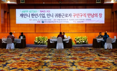 □ 한국산업인력공단 인도네시아 EPS센터는 5일 자카르타 시내 비다카라 호텔에서 EPS 고용허가제를 통해 한국에서 근무하고 귀환한 인도네시아 귀환근로자들을 대상으로 구인구직 만남의 장을 개최했다.□ 이번 구인 구직 만남의장에는 20개의 재인니 한인기업과 귀환근로자 126명이 참가신청을 하여 한인기업과 귀환근로자들의 구인구직에 대한 뜨거운 관심을 보여 주었다. □ 이번 만남의장에 참가한 인니 귀환근로자들은 한국어 시험(EPS-TOPIK)과 기능시험(SKILLS TEST)을 통해 선발되어 한국에서 최대 4년 10개월 동안 근무한 경험이 있다. □ 이번 만남의장 행사에서 당일 채용 확정 예정 귀환근로자는 13개 기업에서 30여명이며, 그 외 참가한 귀환근로자는 회사 자체 심의를 거쳐 추가로 채용이 확정될 예정이므로 최종 취업자는 늘어날 전망이다.□ 장병현 한국산업인력공단 인도네시아 EPS센터장은 “한국에서 근무하고 돌아온 귀환근로자들이 귀환 후 인도네시아에서 안정적인 정착지원과 한국에서 근로한 인니 귀환근로자들의 경험을 활용코자하는 한인기업들을 지원하기 위하여 이번 만남의장을 준비하게 되었다. 앞으로도 한인기업들의 많은 관심과 참여를 부탁드리며, 이번 행사에 참여한 기업과 귀환근로자들의 건의 및 의견사항을 수렴하여 향후 개최될 만남의 장 행사에 적극 반영할 계획이다.”고 말했다.□ 이번 구인구직 만남의 장에 참여한 인테리어 관련 한인기업의 대표는 “이번 인도네시아 EPS센터가 주최한 구인구직 만남의 장에서 우리 회사에서 원하는 경력자를 만날 수 있는 기회를 가졌을 뿐만 아니라 채용까지 진행할 수 있게 되었다. 인도네시아 EPS센터에서 사전에 직종과 관련된 지원자들을 선정해주어 필요한 인원들과 알차게 면접을 진행할 수 있었다.”고 행사 참여 소감을 밝혔다.□ 이번 행사 당일 한인기업 CGM INDONESIA에 채용이 확정된 귀환근로자 리드완 씨는 “이번 행사에 참여하게 되어 아주 기뻤다. 왜냐하면 귀환근로자들이 인도네시아에 귀국하여 다시 일자리를 찾는 것이 쉽지 않다. 이번 행사에서 내가 가진 기술과 알맞은 회사를 찾게 되었고, 또 일할 수 있게 되어 대단히 만족한다. 인도네시아 EPS센터가 오늘과 같은 만남의장을 개최해준 것에 대해 대단히 감사드린다. 앞으로는 자카르타 외 지역에서도 이런 행사가 개최되었으면 좋겠다.”고 말했다.□ 인도네시아 EPS센터는 연중 상시로 EPS센터 내 만남의 장소에서 한인기업과 귀환근로자들에게 취업을 알선하고 있다. 귀환근로자 채용을 원하는 한인기업은 언제든지 인도네시아 EPS센터에 구인신청이 가능하며, EPS센터는 알선에 대한 일체의 비용과 수수료를 받지 않는다.* 문의 : 한국산업인력공단 인도네시아EPS센터 ☎021-7918-6012
