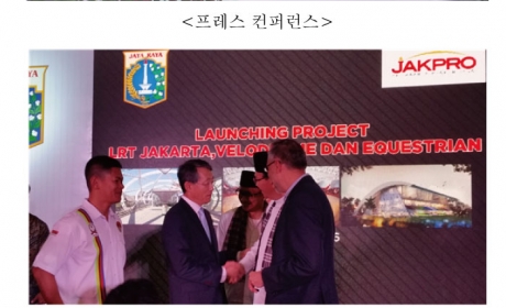 바수끼 주지사, 한국이 참여하는 LRT 1호선 착공 공식 선포조태영 대사, 한국의 경험과 기술을 담은 LRT 건설은 양국 관계 발전에 크게 기여한국기업과 철도시설공단이 주도적으로 참여하는 자카르타 경전철(LRT, Light Rapid Transit) 1호선 사업(약 5.8km)의 착공식이 인도네시아 자카르타 사이클(Velodrome) 경기장 예정지에서 개최되었다. 착공식 행사에는 인도네시아 자카르타주 바수끼 짜하야 뿌르나마(아혹) 주지사와 사업을 총괄하고 있는 JAKPRO (PT Jakarta Propertindo) 사뜨야 사장, 조태영 주인니 한국대사, 모하잠 말릭 주인니 영국대사 등이 참여하였다. 행사전 프레스 컨퍼런스에서 조태영 주인니 한국대사는 한국은 1988년 서울 올림픽, 2014년 인천 아시안게임, 2018년 평창 동계올림픽 등 풍부한 국제행사 경험을 가지고 있으며 전국을 3시간 내 생활권으로 만든 우수한 철도기술력을 보유하고 있다고 소개하였다. 아울러 국제 스포츠 경기를 성공적으로 마무리하기 위해서는 여러 가지 요소가 유기적으로 연계가 되어야 하며 특히 평시보다 3.5배 이상 많은 교통수요를 어떻게 대처할 것인가가 무엇보다 중요하므로 2018년 아시안 게임을 대비한 경전철 사업의 착수는 큰 의미가 있으며, 고속철도, 간선철도, 경전철 등 최고의 기술과 경험을 보유한 한국철도시설공단 및 한국 기업이 LRT 사업에 참여하게 되어 무척이나 기쁘고 자카르타의 심각한 교통난 해소와 함께 한․인도네시아 양국의 협력관계도 더 발전하게 될 것이라고 하였다. 모하잠 말릭 영국대사도 2012년 런던올림픽 개최 경험을 바탕으로 2018년 자카르타 아시안게임 지원을 약속했다. 이날 행사에는 외국 귀빈으로는 상기 사업의 협력이 예상되는 국가인 한국 및 영국 대사만이 초청되었으며, 바수끼 주지사와 사띠야 사장도 상기내용에 감사로 화답했다. 촉박한 공기일정을 준수가능 여부에 대한 기자의 질문에 JAKPRO의 Satya 사장은 올림픽 및 아시안게임 경험이 있고 우수한 기술력을 보유한 한국 및 영국업체와 협력하기 때문에 공기 준수가 가능하다고 답변하였으며, 조태영 주인니 한국대사는 자카르타 주지사에게 한국철도시설공단이 이미 JAKPRO와 긴밀한 협력을 진행하고 있으며 자카르타 주정부 및 JAKPRO와 적극적으로 협력하여 최선 이상의 성과를 낼 수 있도록 노력할 예정이라고 하였다. 이번에 착공식을 가진 자카르타 경전철(LRT) 1호선 사업은 2018년 8월 자카르타 아시안게임 개최 이전에 완공을 목표로 건설될 예정이다.