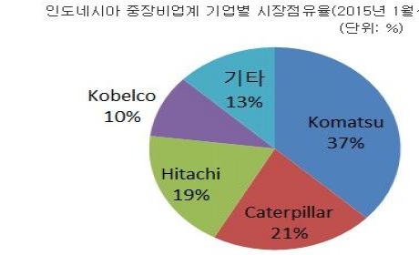 - 원자재 수요 감소로 광업·농업 부문 중장비 수요 감소 -- 인프라 개발로 인한 건설시장 호조로 건설장비는 성장 유지 –- 향후 연 9%대의 성장 예상, 시장 확대에 따른 틈새시장 공략 가능 - □ 개요 ○ 인도네시아 중장비 시장은 최근 세계적인 원자재 수요 감소의 영향으로 광업용 중장비, 팜오일 운반용 트럭 수요 감소 등 시장이 위축되고 있으나, 각종 인프라 건설로 인한 건설 경기의 호조로 관련 중장비 수요는 유지되고 있음. ○ 인도네시아 중장비 시장은 중장기 적으로는 연평균 9%가 넘는 높은 성장세를 나타낼 것으로 보이며, 2020년까지 12%가 넘는 성장세를 보일 것으로 예상되는 건설시장이 이러한 성장을 뒷받침할 것으로 예상됨. ○ 인도네시아 중장비 시장을 일본·유럽·미국계 기업이 장악하고 있으나, 최근 시장 확대에 따른 기타 부분품, 특수 중장비의 수요가 증가하고 있는 점에 주목할 필요가 있으며, 정부의 관련 규칙 변경 움직임에도 유의해야 함. □ 수요 정체된 인도네시아 중장비 시장 ○ 최근 인도네시아 중장비제조업자협회(이하 HINABI) 등에서 발표한 분석 보고서에 따르면, 인도네시아 중장비 시장은 최근 세계 광업 시장 둔화, 인도네시아 인프라 프로젝트 지연, 루피아 환율 절하 등의 문제로 시장이 축소되고 있음. ○ 인도네시아 중장비 기기 최대 시장인 광업 수요동향은 중요한 의미를 가지며, 인프라 개발의 일부 지연 또한 관련 시장에 직접적인 영향을 미침. 또, 미국 금리인상 등의 영향으로 자국 통화인 루피아화 평가절하가 지속되면서 부품 수입가가 증가하고, 이에 따라 수요자들의 구매력에 영향을 미치고 있음. ○ 이와 같은 이유로 중장비 업계는 영업목표를 현실화 시키고 있으며, 협회의 2016년 판매목표도 기존 6000대에서 4000대로 수정함. 새로운 목표는 2015년 총 판매대수인 5174대 보다 22.7% 축소됨. ○ 이러한 수요 감소는 업계 최대 기업인 United Tractors(Komatsu, 코마츠)의 판매량에서도 드러남. 코마츠의 중장비 판매는 2015년 1월~9월간 1799대로 전년동기 2982대에 비해 40% 가까이 감소함. 이 기간 코마츠의 시장 점유율은 37%에 달하며, 다음은 캐터필러(Caterpillar) 21%, 히다치(Hitachi) 19%, 코벨코(Kobelco) 10%, 나머지 기업들이 13%를 차지함. □ 건설·임업으로 수요 중심 이동, 전망은 밝아 ○ 2015년 1월에서 9월까지의 인도네시아 전체 중장비 판매량 중 농업 부문의 비중은 15%를 차지했으나, 이는 전년 동기의 23% 점유율에서 큰 폭 하락함. 광물 부문도 같은 기간 29% 점유율이나, 전년에는 35%였음. 반면, 임업 부문은 2014년 1월~9월 14%에서 2015년 동기에는 22%로 증가했으며, 건설 부문은 2014년 28%에서 2015년 34%로 증가함. ○ 광물 중장비의 낮은 수요는 석탄 등 원자재 가격 하락에 따른 광업둔화에 원인이 있으며, 팜오일 가격 하락이 농업용 중장비 수요 감소에 결정적인 영향을 미침. 반면, 현재 경기둔화에 비교적 큰 영향을 받지 않은 임업과 그래도 꾸준히 추진되고 있는 인도네시아 인프라 개발로 추진력을 얻고 있는 건설업용 중장비 수요는 유지되고 있음. ○ 현재는 세계적 원자재 수입 감소의 영향으로 수요 부진을 보이고 있으나, 유로모니터 보고서에 따르면 인도네시아의 건설, 광업용 중장비 수요는 2015~2020년 연평균 9.3%의 성장을 보일 것으로 예상되고 있음. 예상의 배경에는 한정돼 있는 원자재 수요가 다시 반등할 것이라는 점과, 인도네시아 내 건설 중인 11개의 니켈 제련소가 완공될 경우 관련 중장비 수요가 늘어날 것이라는 예측이 있음. 인도네시아 중장비 시장규모 전망 (단위: 십억 루피아) 기계 종류201520162017201820192020광업(파쇄, 터널 기계 등)4,9085,2295,5685,9276,3126,713토사 이동(불도저 등)9,75710,83012,05013,40714,94616,677콘크리트 파괴 및 도로포장(믹스, 도로포장 기계 등)82.49097.5106116127총합14,74716,14817,71619,44021,37423,516 자료원: 유로모니터 □ 건설기계 수요 증가가 예상되는 인도네시아 건설시장 ○ 2014년 10월 현 조코위 정부가 출범한 이후 해양중심국가 건설, 지역 간 균형발전을 정책기조로 하면서 인프라 확충 정책이 추진되고 있음. 특히 5500조 루피아 규모의 2015~2019년 중기국가개발계획을 발표하고, 부처별로 도로, 철도, 항만 등 세부계획이 수립됨. ○ 2019년까지의 대통령 임기 내에 2000㎞의 도로 건설, 4000㎞의 지역도로를 국도로 전환하며, 자카르타가 위치한 자바섬의 지역 철도 개발에 총 111조1000억 루피아를 투자할 계획임. 또, 물류비 저감을 위한 24개 국가 항만을 개발할 계획이며, 574억 달러를 투자해 군도를 바닷길로 연결하는 해양 고속도로 프로젝트(Sea Toll Road)를 추진하고 있음. ○ 이러한 배경으로 인도네시아 건설시장은 2015년까지 연평균 6~7% 성장세를 보이고 있으며, 2015년 시장규모는 1049억 달러로 추정됨. 특히 2016년 하반기부터는 인프라 개발의 본격화와 2018년으로 임박한 자카르타 아시안게임 준비 등으로 시장 활성화가 기대되며, 유로모니터 보고서에 따르면 향후 2020년까지 연 성장률이 12.3%에 이를 것으로 예상됨. 인도네시아 건설시장 규모 및 추이 (단위: 억 달러, %) 구분20102011201220132014e2015f건설시장 규모억 달러7278629179349511,049성장률7.06.77.56.76.36.8건설/