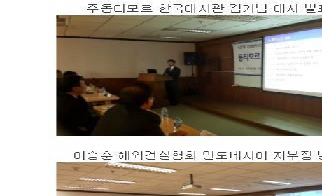 - KOTRA 자카르타 무역관, 6월 17일 ‘동티모르 투자환경 설명회’ 개최 –- 각종 인프라 건설사업 외에도 주택개량, 숙박업 등 진출 유망 –- 법률 제도 미비, 정치적 불안정, 열악한 인프라 등은 유의해야 - □ 개요 ○ 2016년 6월 KOTRA 자카르타 무역관에서 개최한 동티모르 투자환경 설명회에는 주동티모르 한국대사관 김기남 대사, 동티모르 정부 연사 등이 직접 연사로 참석, 쉽게 입수하기 어려운 다양한 진출정보 등을 공개해 우리 기업들이 높은 관심을 보임. ○ 동티모르는 2002년 독립을 선포한 신생국으로, 인구 117만 명의 소국이지만 수입에 대한 의존도가 매우 높은 점과 석유 재원을 활용한 인프라 개발수요가 높은 점에서 해외기업들의 진출 관심이 높은 지역임. 특히, 동티모르 정부가 2011~2030 전략개발계획을 통해 제시한 석유 인프라, 도로, 항만, 발전소 등 개발계획이 주목을 받고 있음. ○ 신생국임에 따른 법률 제도 미비, 정치적 불안정, 열악한 인프라 등은 현지 진출을 고려하는 우리 기업들이 유의해야 할 사항임. 또, 인도네시아 점령기간의 영향으로 인도네시아어가 통용되는 점이나, 일단 수립된 정책은 일관성 있게 추진하는 점 등도 참고할 만한 사항임. □ 우리 기업 몰린 동티모르 투자환경 세미나 ○ KOTRA 자카르타 무역관은 우리 기업의 동티모르 프로젝트 관련 정보 및 진출 지원을 위해 2016년 6월 17일 자카르타 무역관 상생협력센터에서 동티모르 투자환경 세미나를 개최함. 이 세미나는 주동티모르 한국대사관, 해외건설협회, 중소기업 진흥공단과 공동 주최 ○ 이 세미나에서는 주동티모르 한국대사관 김기남 대사, 페드로 동티모르 기획전략투자부 수석고문, 이승훈 해외건설협회 지부장이 직접 연사로 참석했으며, 쉽게 접할 수 없는 동티모르의 최신정보를 제공해 우리 기업들의 높은 호응을 얻음. ○ 동티모르 투자환경 설명회 현장 사진(2016년 6월) ○ 동티모르 국가 경제의 최신 정보 외에 석유 인프라, 도로·교량, 공항·항만, 전기·상하수도 분야 등 주요 건설시장 개발계획 등이 우리 기업들의 관심을 끎. 이번 세미나의 주요 내용, 시사점, 유의사항 등을 아래와 같이 정리함. □ 동티모르 개요 및 경제현황 ○ 동티모르 민주공화국(Democratic Republic of Timor-Leste)은 자카르타 동부 2200㎞ 지점에 위치한 티모르(Timor)섬의 동부에 위치함. 국토면적은 1만4874㎢으로 한국 강원도 면적인 1만6874㎢보다 작음. 전체 인구는 2015년 기준으로 약 117만 명이며, 수도인 딜리(Dili)에는 약 20만 명이 거주함. 동티모르는 과거 포르투갈의 식민지배를 거쳐서 일본, 인도네시아의 지배를 받았으며 2002년 공식적으로 독립을 선포함. ○ 동티모르 국기와 위치 ○ 동티모르는 석유, 가스 등 자원에 의존한 경제를 유지하고 있음. 2013년 국가 GDP 56억 달러 중 석유로 인한 GDP가 43억 달러로, 약 76%를 자원에 의존하고 있음. 1인당 GDP는 4742달러 수준이지만 자원 관련 부분을 제외하면 1118달러에 불과함. ○ 동티모르 GDP 추이 ○ 동티모르는 국내산업의 미비로 수입 의존성이 강함. 주요 수입품목으로는 천연연료, 자동차부품, 곡물, 보일러, 의료장비, 전기기계 등이 있음. 최대 수입 대상국은 인도네시아(1억6000만 달러), 싱가포르(1억3000만 달러), 중국(4000만 달러) 등이며, 한국은 14위 수입 대상국임. 주요 수출품목으로는 커피, 열대원목, 알루미늄 등이 있음. ○ 한국과의 교역 규모는 2014년 기준으로 9300만 달러이며, 주요 수출품목은 섬유, 건설 구조물, 자동차 등이며 수입품목은 원유, LPG 등임. ○ 주요 소비계층은 포르투갈, 호주, 인도네시아 등에서부터 파견된 공무원, 사업가나 현지 고위공무원, 부호 등이며, 서민층은 실질적인 구매력이 미미함. □ 동티모르 투자환경 ○ 2016년 세계은행 기업환경평가(Doing Business 2016)에서 동티모르는 173위로 189개국 중 하위권을 차지했으며, 2015년도 167위보다 하락함. 각종 인허가, 자금조달, 분쟁해결 분야 등의 사업환경이 특히 열악한 것으로 나타남.○ 동티모르의 외국인 직접투자액은 2014년 기준 3400만 달러로, 2013년 5600만 달러 대비 40% 하락함. ○ 동티모르는 30세 이하 세대가 전체 인구의 73%를 차지할 정도로 노동력이 풍부하지만, 숙련 노동력은 부족함. 월 최저임금은 115달러임.○ 동티모르 노동력 및 인구분포 현황□ 동티모르 투자 유망 분야 ○ 동티모르 정부는 인프라 개발분야에 2016년 약 4억 달러를 투자할 계획이며, 2018년에는 12억 달러까지 확대한다는 계획임.○ 구체적으로는 전략개발계획(Strategic Development Plan 2030)을 통해 2030년까지 저소득 국가에서 중상위 소득 국가로 전환을 목표로 하고 있음. 이를 위해 주요 인프라 사업을 추진 중이며, 크게 남부 해안지역 개발사업(Tasi Mane Project), 도로망 재건사업, Tibar 신항만 신설, Dili 국제공항 재건축 사업 등을 진행하고 있음. ○ 이 계획에 따르면, 사회자본(Social Capital), 인프라 개발, 경제발전, 제도적인 틀 구성의 4가지 분야에서 국가적인 개발계획이 추진되고 있으며, 이 중 인프라 개발 부문의 주요 프로젝트 내용은 아래와 같음. 동티모르 정부는 석유 관련 인프라 개발에 가장 큰 중점을 두고 있음. ○ 이외 유망사업으로 주